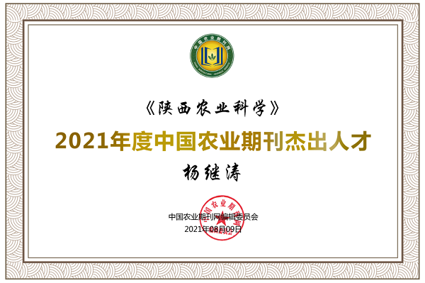 10月25-28日,中国农业期刊学术年会在河南郑州举办,会议公布了中国农业期刊网年度评优结果并颁发了获奖证书。《陕西农业科学》荣获“优秀期刊奖”,常务副主编杨继涛荣获“杰出人才奖”。