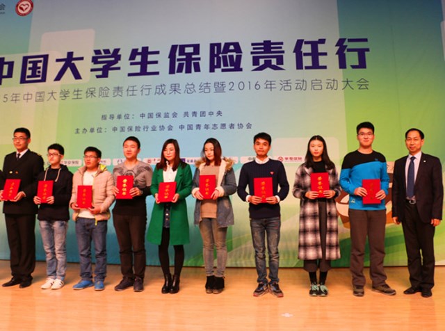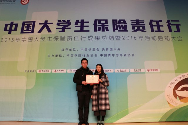 2015年12月30日,在中国保监会、共青团中央的指导下,中国保险行业协会和中国青年志愿者协会共同主办的老员工保险责任行成果总结大会在中国人民大学举行。会议现场对专项活动优秀社会实践团队进行了表彰,全国共有三十支队伍获奖,其中包括金奖十支,银奖二十支,公司入选团队—best365“保险下乡志愿队”实践团队获评金奖。