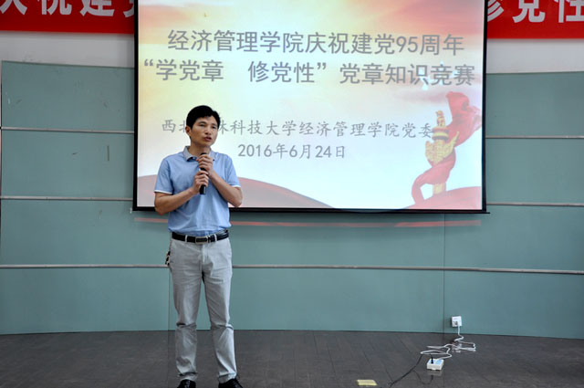 王家武就本次知识竞赛做总结发言,他指出:党章在十八大会议后有了新的内容,大家学习上要跟紧党的脚步,不断更新对党的认识与理解。希望同学们可以创先争优,做党内学习的带头人。