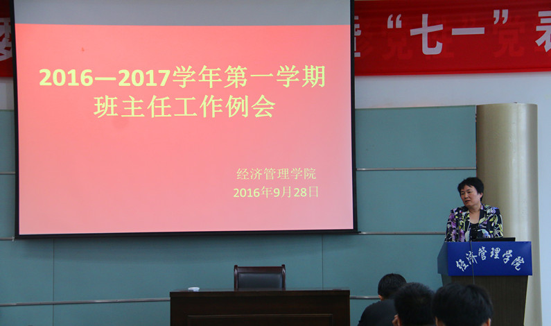 会议还邀请国贸131班班主任董春柳和农经141班班主任马红玉进行经验分享。作为毕业班班主任,董春柳通报班级保研去向和就业情况,她从“抓好大一”、“分类管理”两部分向大家分享带班经验,她谈到新生班级班风建设意义重大,抓好大一时期员工成绩对日后员工保研、工作至关重要;她着重介绍班级现阶段分类管理的模式,将员工按照毕业意向进行分类,分别建立微信群请各方面经验丰富的老师为员工进行指导,效果显著。农经141班班主任马红玉老师从抓好员工学业生涯规划和尊重员工两方面入手,她指出引导新生提前进行老员工涯学业规划是十分重要的,这样可以使员工尽早明确目标从而进行有方向、有针对性的努力。同时,马红玉强调在日常班级管理中要做到尊重员工,与员工平等相处,亦师亦友。