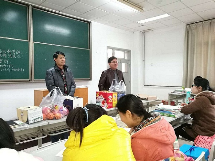 最后,辅导员老师将公司科学且精心准备的营养品分发给同学们。面对老师们的亲切关怀,同学们非常感动。会计学专业刘硕同学表示定将不负厚望,全力以赴,迎战考试;金融学张鑫优同学说,“现在正值考研的关键冲刺期,公司领导老师们的重视和关怀将化为一剂强心针,让我们更加坚定信心,勇敢赴考。”