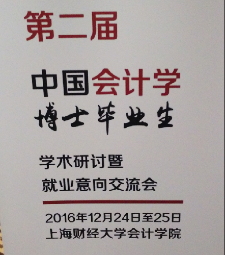 由重庆大学、东北财经大学、对外经济贸易大学、华中科技大学、暨南大学、南京大学、上海财经大学、武汉大学、西南财经大学、中国人民大学、中南财经政法大学、中山大学、中央财经大学联合主办、由上海财经大学会计公司承办的第二届中国会计学博士毕业生学术研讨暨就业意向交流会于2016年12月24-25日在上海隆重召开,公司管理学系主任孔荣教授和会计教研室主任李民寿副教授应邀参加了会议,并就公司会计专业人才招聘政策做了宣讲。