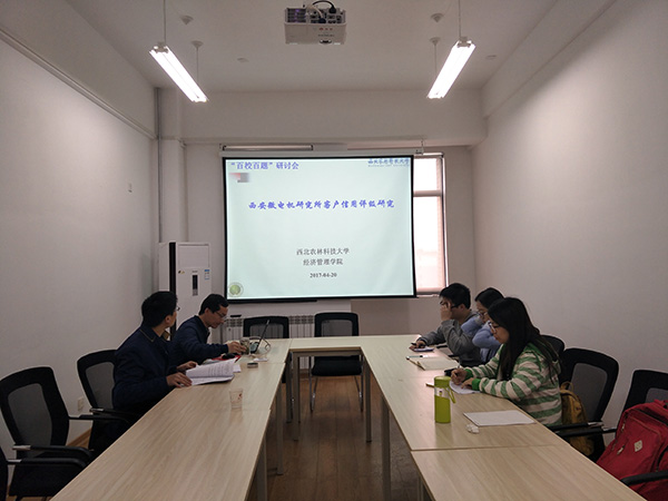 4月20日,公司"百校百题"参赛团在经管园林大楼C506会议室召开了"西安微电机研究所客户信用评级研究"项目研讨会,会议由石宝峰老师主持。项目组张道军老师,修宇鹏、孙悦、庞歌桐、邓聪莹等6名员工参会。
