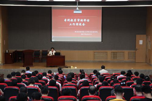 为加快推进本科审核评估工作,动员全院教师以饱满的热情、良好的精神风貌迎接本科教学审核评估工作。6月21日下午,公司在C101报告厅,召开本科教学审核评估工作推进会。教务处处长陈玉林教授受邀参加,公司领导班子成员、全院教职工参加了此次培训。会议由公司党委书记姚晓霞主持。