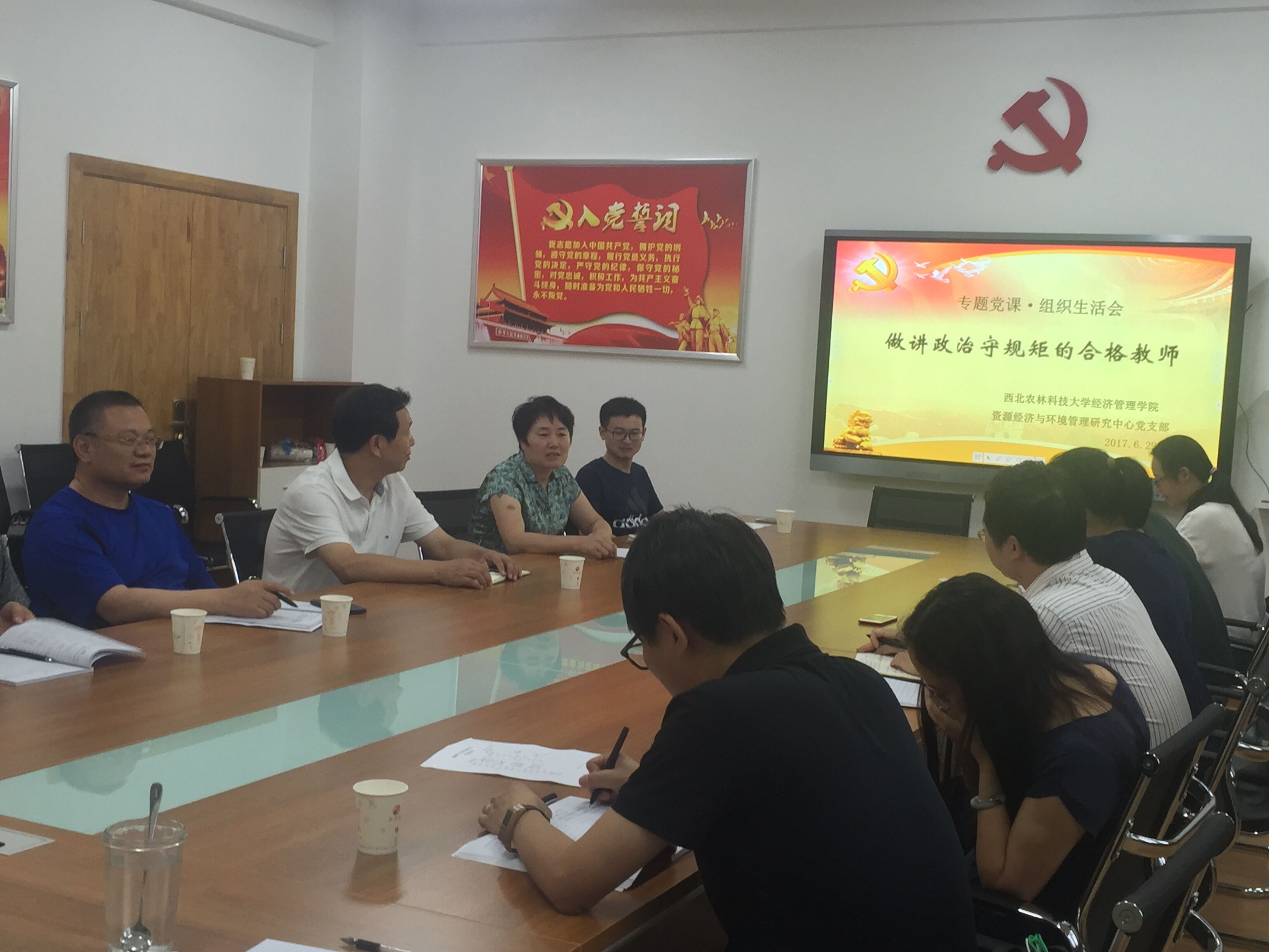 6月29日下午,best365资源经济与环境管理研究中心党支部全体成员在经管园林大楼C205会议室召开“做讲政治、守规矩的合格教师”党组织生活会。公司党委书记姚晓霞担任主讲嘉宾,公司党委副书记徐养福、中心两位民盟人士李桦教授和王博文副教授出席,会议由支部书记骆耀峰同志主持。