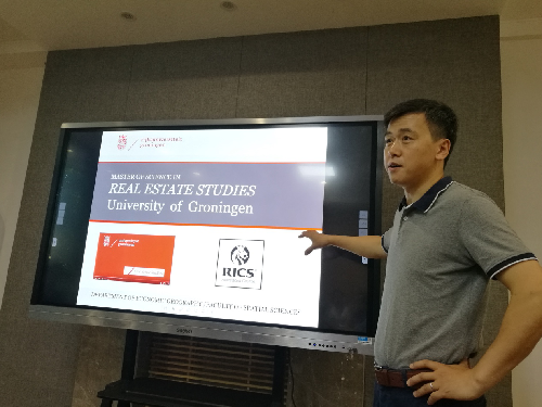 此外,刘博士就荷兰格罗宁根大学留学项目,特别是房地产专业的招生、培养、就业等情况进行了介绍,鼓励有兴趣的员工积极申请进行学术深造。西北工业大学的任洪浩副教授(2004~2011年在公司土地资源管理专业进行本科和硕士学习,2015年10月取得格罗宁根大学房地产专业博士学位)参加了报告会,并通过自身在格罗宁根大学的学习和生活情况,与参会师生进行深入交流。