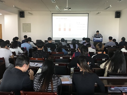 温晓林首先回顾了去年一年的员工工作,就新学年的就业、班主任考核、学风建设、安全稳定等工作做了说明,特别强调了在即将到来的本科教学评估中各位班主任应切实起到督导作用。随后解释了今年的研究生推免问题,并建议班主任合理引导,做好2018届员工的就业工作。