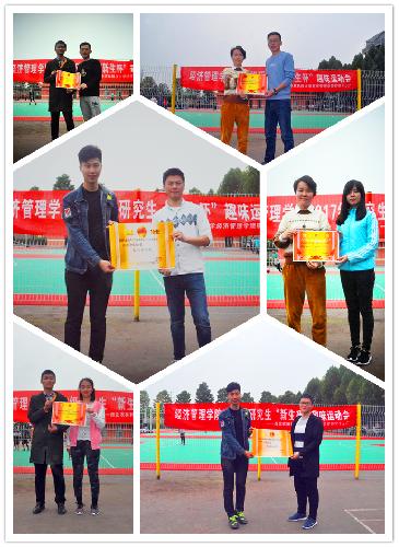 赛后,辅导员吴春生和公司研究生会主席李顾杰、副主席明柱为获奖班级颁奖。其中,金融专硕班获得了绑腿接力跑、跳大绳以及投篮入筐比赛的单项奖以及最佳团队奖;学硕一班获得你比我猜、撕名牌大战单项奖和最具风采奖;学硕二班获得精神文明奖。