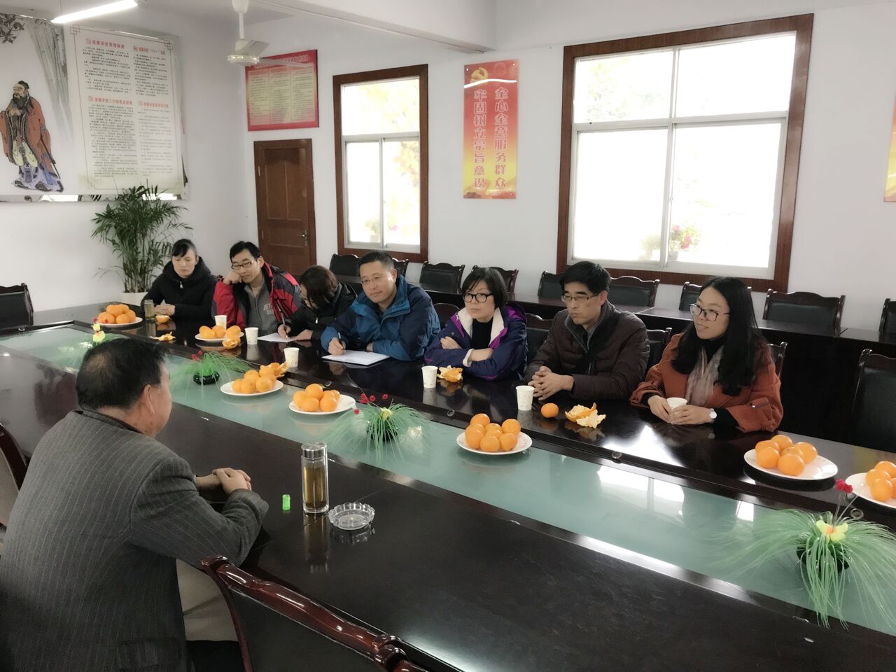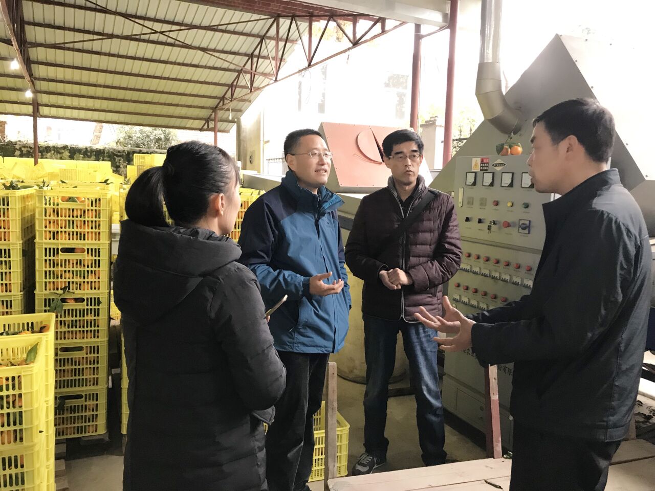 支部成员与桔园镇刘家营村(2017年刘家营村被评为全国文明村镇)村支书进行了深入的座谈。村支书主要围绕刘家营村特色产业发展、农民收入与收入结构变动、基层党建和村务管理、乡规乡风五个方面进行了详细的讲解。他用生动的事例讲述了柑橘产业的发展有农民增收之间的关系,以及在基层党建方面树典型、抓先进的具体做法。此外,村支书还从生产环节的质量控制到销售环节的渠道管理、品牌建设,国内市场和海外市场的开拓等方面给大家讲述了刘家营柑橘专业合作社在柑橘产业发展方面发挥的作用,随后带领一行党员在柑橘专业合作社进行了现场考察。
