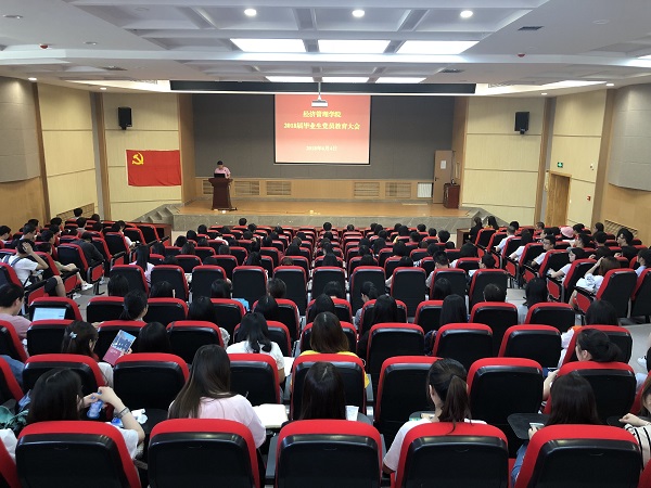 6月4日下午,公司在经管园林大楼C101会议室召开2018届毕业生党员教育大会。公司党委书记张岁平、各员工党支部书记及委员、全体毕业生党员200余人参加,会议由公司党委副书记温晓林主持。