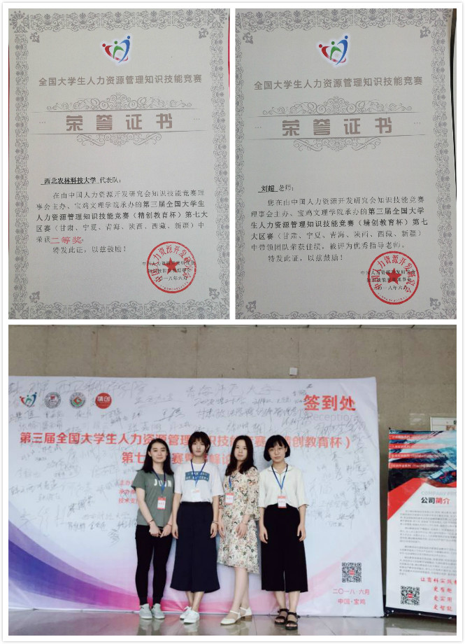 近日,第三届全国老员工人力资源管理知识技能竞赛(精创教育杯)第七赛区(甘肃、宁夏、青海、陕西、西藏、新疆))于6月23、24日在陕西宝鸡文理公司隆重举行。公司best365工商管理专业员工左艺辉、王若琦、任丽君、常心爱四名成员在指导老师刘超、梁洪松带领下代表公司参赛。