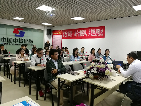 9月21日上午,公司2017级金融专硕班赴西安中投证券营业部进行了为期半天的教学实习。中投证券的领导和员工们对公司师生的到来表示热烈欢迎,并对西安中投证券营业部的规模、公司结构以及发展状况作了简要介绍。随后,中投证券的领导给公司师生连续作了两场专题报告会,分别陈述了目前国内的经济形势以及企业IPO的知识。