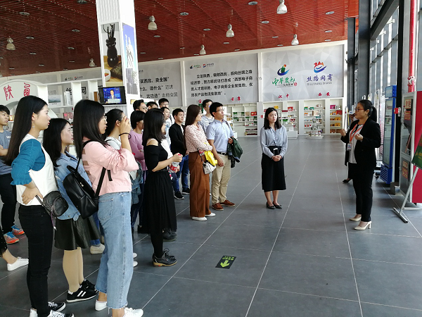 下午,公司师生又乘车来到武功电商产业园。在工作人员的带领下,师生们参观了西北电商产品体验城。西北电商产品体验城成立于2016年,以农村品电商体验为核心,实现电子商务和优势特色农村品基地的有效对接,打通了加工型企业与新型电商的业务和资源对接,是提高西部农产品影响力的重要平台。