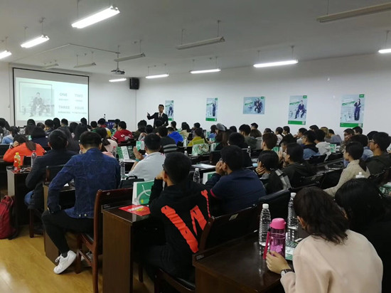 会上,链家集团人事经理岳刚通过VCR展示了公司的管理体系和企业文化等方面情况,并重点介绍了链家的校园招聘政策和人才培养机制,他通过热情洋溢的演讲,向在座同学分享自己的入职趣事以及经历体验,使同学们对链家的工作有了较为清晰的认知。