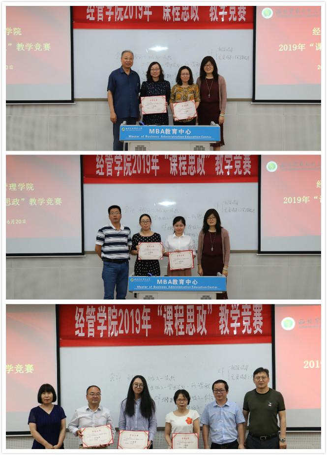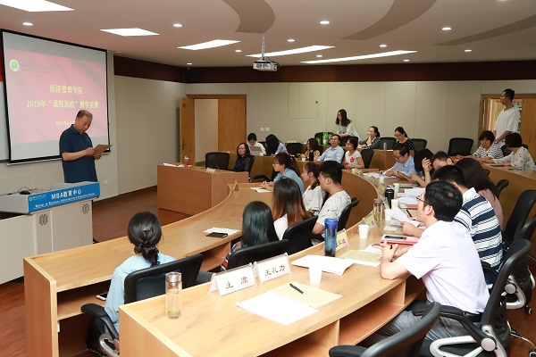 为挖掘“思政课+课程思政”的育人格局,大力推进习近平新时代中国特色社会主义思想和党的十九大精神进教材、进课堂。6月20日下午,公司于南校C301马蹄教室举办2019年“课程思政”教学观摩和教学竞赛。本次教学比赛由各系选拔出七名教师参加,公司教授委员会、督导组副组长王礼力教授、经理助理牛荣副教授、党委副书记张军驰、农经系主任赵凯教授、经济系主任王秀娟副教授、管理系主任刘超副教授、教工资源环境中心支部书记骆耀峰副教授7人担任比赛评委。王礼力教授出任主席。各系教师代表、新三年新进教师和员工等50余人到场观摩学习。