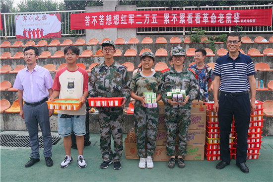 最后,公司领导为参训新生及承训教官送上饼干、杨凌特色老酸奶等慰问品,同学们将这份“心”礼物接在手中,暖入怀里,喜在心上。新生们品尝酸奶时喜笑颜开,将训练的苦累、离家的思念、全身的酸痛抛之脑后,化作接下来军训生活的动力、为公司争光的使命,公司领导们看在眼里,感到非常欣慰。