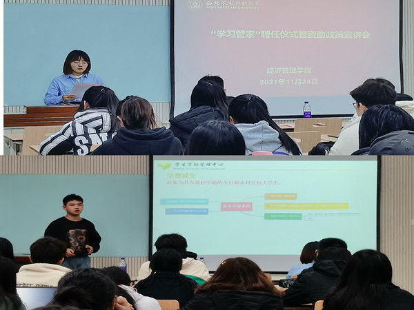 为践行资助育人理念,聚合朋辈学业互助资源,营造良好学习风气,做好学业困难员工的帮扶工作,同时为帮助2021级新生深入了解公司资助政策,11月24日,公司举办“学习管家”聘任仪式暨资助政策宣讲会,资助管理中心王辉、公司资助专员常小文、“学习管家”代表以及2021级学习委员参加本次活动。