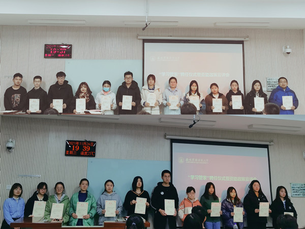 会上,常小文老师宣读了公司关于聘任姚远等41名“学习管家”的决定,并介绍了朋辈辅导学习班开设课程、开课时间,“学习管家”的职责及课程安排等情况,同时鼓励“学习管家”们担起责任,帮助存在学业困难的同学改善学习方法,提高学习成绩,养成良好的学习习惯,切实解决同学们学业上的困难。随后,常小文老师、王辉老师为“学习管家”颁发聘书。2019级员工孙华蔚谈到:在我的求学过程中,获得过各类奖助学金,感受到了国家、社会和公司的爱,希望通过朋辈辅导学习班将这份爱传递下去,积极与学弟学妹们交流,分享自己学习心得和学习方法。