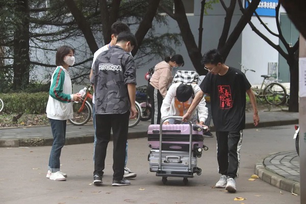 志愿者帮助新生搬运行李
