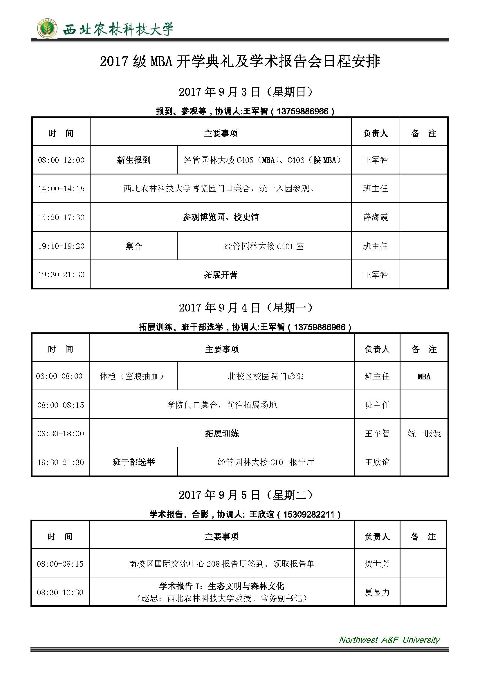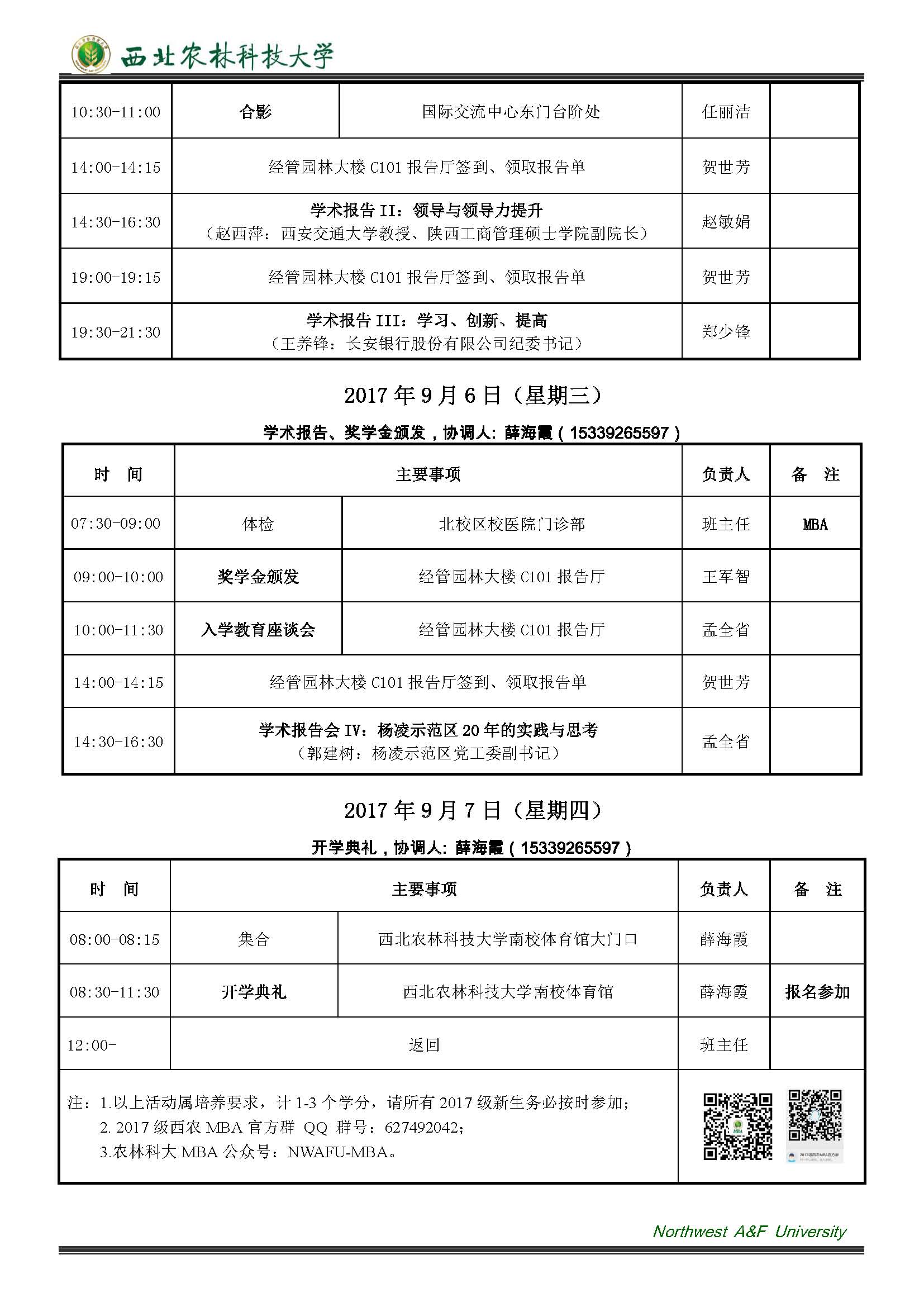 2017级MBA开学典礼及学术报告会日程安排