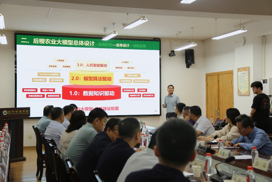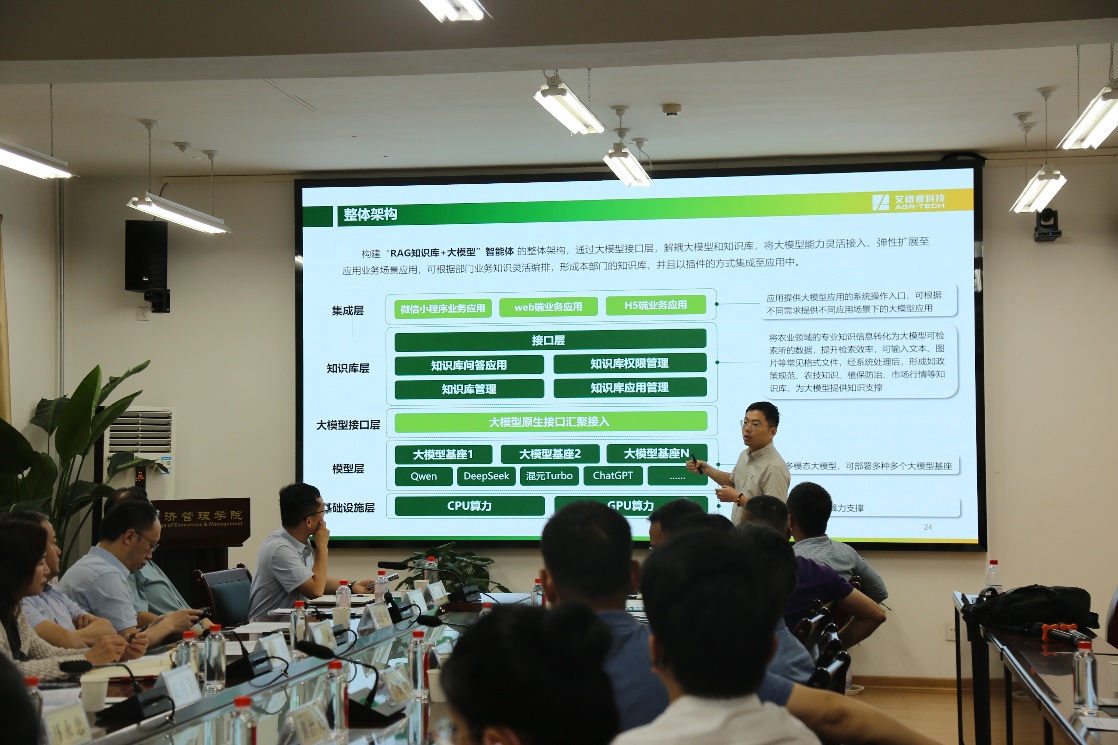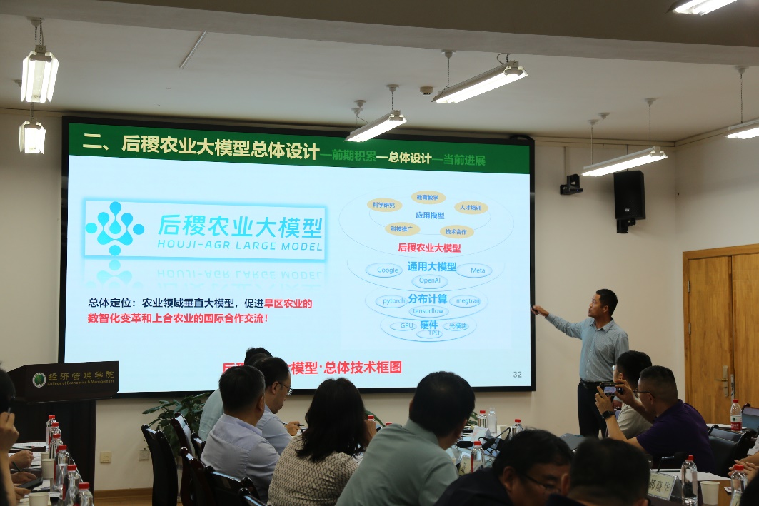 会上,项目负责人、best365官方网站西部农村发展研究中心主任、农业数智化现代产业公司经理阮俊虎教授介绍了“后稷农业大模型1.0”的研发背景、技术架构、未来规划、使用功能和应用场景。该模型充分发挥公司在旱区农业科研领域的学科优势,依托公司的海量高质量农业知识数据训练而成,深度融合农业专业知识,具备自然语言处理、计算机视觉、多模态等能力,可以实现农业文本语义理解、农业图片识别、农业知识问答、农业生产决策推理等多项功能。