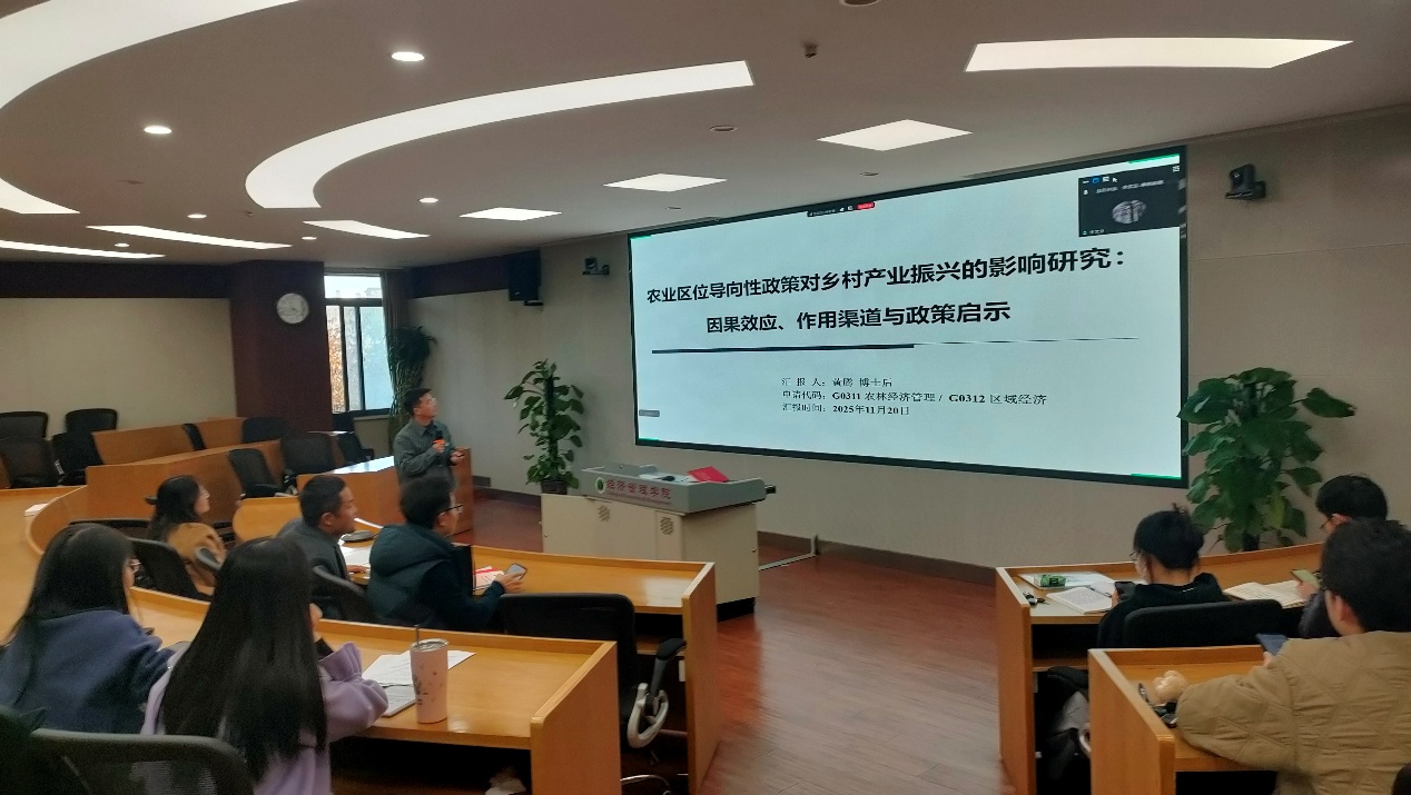 报告结束后,进入青年教师汇报与交流环节。西部农村发展研究中心党支部两位青年教师黄腾、赵爽爽依次围绕各自拟申报的基金选题进行了汇报,从选题、研究背景、研究思路、研究内容等方面作了详细介绍。两位老师在汇报中不仅展示了各自的研究方向和学术积累,也提出了在选题聚焦度、创新点提炼、方法路径设计等方面的困惑和思考。