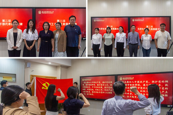 启动仪式在庄严的国歌声中拉开序幕,马奕颜宣读了《best365关于在学工干部和员工党员中开展“亮身份·践承诺·树形象”系列主题活动的实施方案》,对活动目标、内容及有关要求进行详细说明,并讲明了亮明党员身份、践行党员承诺、树立良好形象的具体做法。石颖贤、张军驰为学工干部代表与员工党员代表依次佩戴党员徽章,金融党支部书记张孟迪带领大家面向党旗,重温入党誓词,在党员徽章的照耀下与铿锵有力的誓词中感悟初心使命。