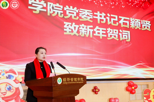 公司党委书记石颖贤致新年贺词。她表示,2024年公司各项事业呈现全面起势、多点突破的良好态势。她代表公司向全体师生一年来的辛勤付出表示衷心感谢。她指出,2025年公司将继续坚持守正创新,以梦想为引、以创新为翼、以实干为基,为创建世界一流农业大学贡献经管力量。