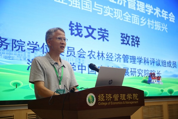 唐忠在致辞中回顾了农经年会近7年来的发展历程,对本次大会的顺利召开表示祝贺。他指出年会应继续秉持学术性、开放性、引领性、持续性和简朴性,坚持以高等公司师生为主体,打造开放式的中国农林经济管理专业学科交流平台,期待农经人坚持学术追求和学术理想,与时俱进,为建设农业强国和实现乡村振兴提供农经智慧。