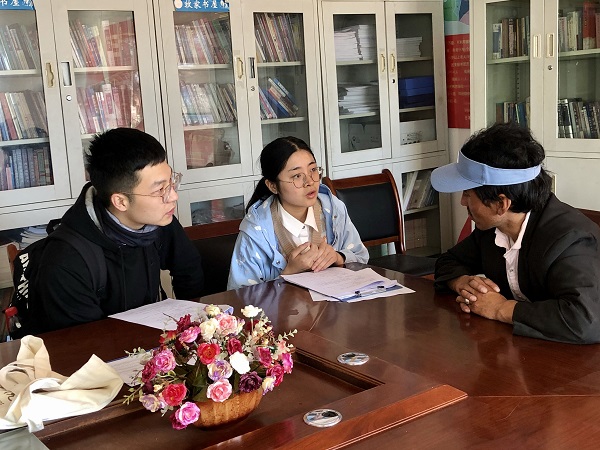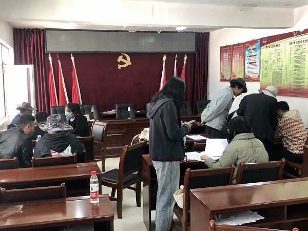 切扎村位于海南藏族自治州廿地乡政府西北处,平均海拔3200米,是一个以牧为主的藏族村落,可利用草山面积43.75万亩,于2019年退出贫困村序列。调研当日,调研团队第一时间与切扎村村委会工作人员进行了沟通,对切扎村整村及牧民的基本情况有了初步了解,并在村委会工作人员的帮助下,邀请到11户牧民来到村委会进行集中调研。通过与牧户进行深入交流与访谈,调研团队对当地的畜牧业产业发展、文化传统、生态治理及乡村文明等方面有了更清楚的了解,调研队员在问卷访谈过程中收获颇丰。当晚,调研团队组织讨论,并对调查问卷进行了自查和互查,针对调研过程中及问卷填写存在的有争议问题和注意事项展开深入探讨,力争提高调研效率与质量。在调研过程中,由于切扎村属于藏族村落,语言障碍、气候不适应和饮食不适应等问题并没有干扰到调研的进度和安排,队员纷纷展现出积极乐观的精神面貌和甘于吃苦的西农精神。