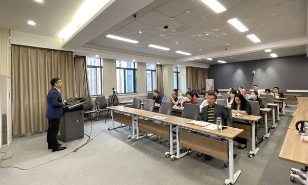 郭建校教授从课程思政建设的教学设计路径、教学改革历程、思路、技能与方法,进行了非常专业的讲授,并分享了教学案例。尤其是,以《统计学》课程为例,从教育规律和教学要求出发,从教学目的、课堂教学、教学手段与方法的改革、实践与创新、考勤、考核、效果评价、教材建设、以及有关课程思政的公司产品研究、教学设计和工作方法等方面进行了详细的介绍,特别是精心准备的两个教学设计案例,给大家示范了思政元素如何有机融入教学过程、显性教育和隐性教育如何有机统一,让人耳目一新、茅塞顿开。他指出育人就是要让员工觉得大道理真有道理,要入耳入脑入心,把耳熟能详的大道理讲到员工心里去,希望老师们不忘师者初心、牢记育人使命。