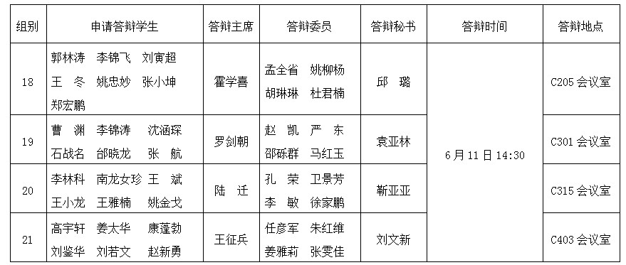 1.答辩前材料:请以上申请答辩学员,于6月9日12:00前,将6本论文、修改说明、答辩PPT等材料送交所在答辩小组答辩秘书处;