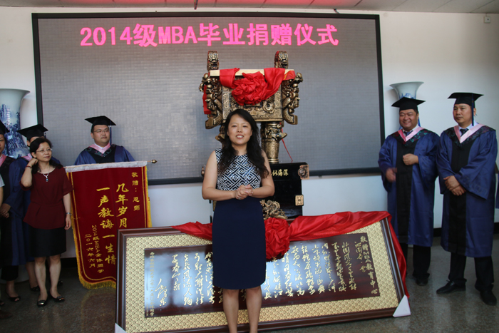 捐赠仪式上,MBA教育中心主任赵敏娟代表公司作了致辞,回顾了学员们在校生活学习的点点滴滴,并对即将离校的全体学员提出殷切希望。她指出,在毕业生离校之际,公司以各种形式为同学们送别,这些寄语体现了公司领导老师对同学们的真切关爱、殷切期待和美好祝愿,希望同学们谨记在心,并以此激励自己,在未来的学习、工作中继续努力奋斗,不断取得新的成绩。