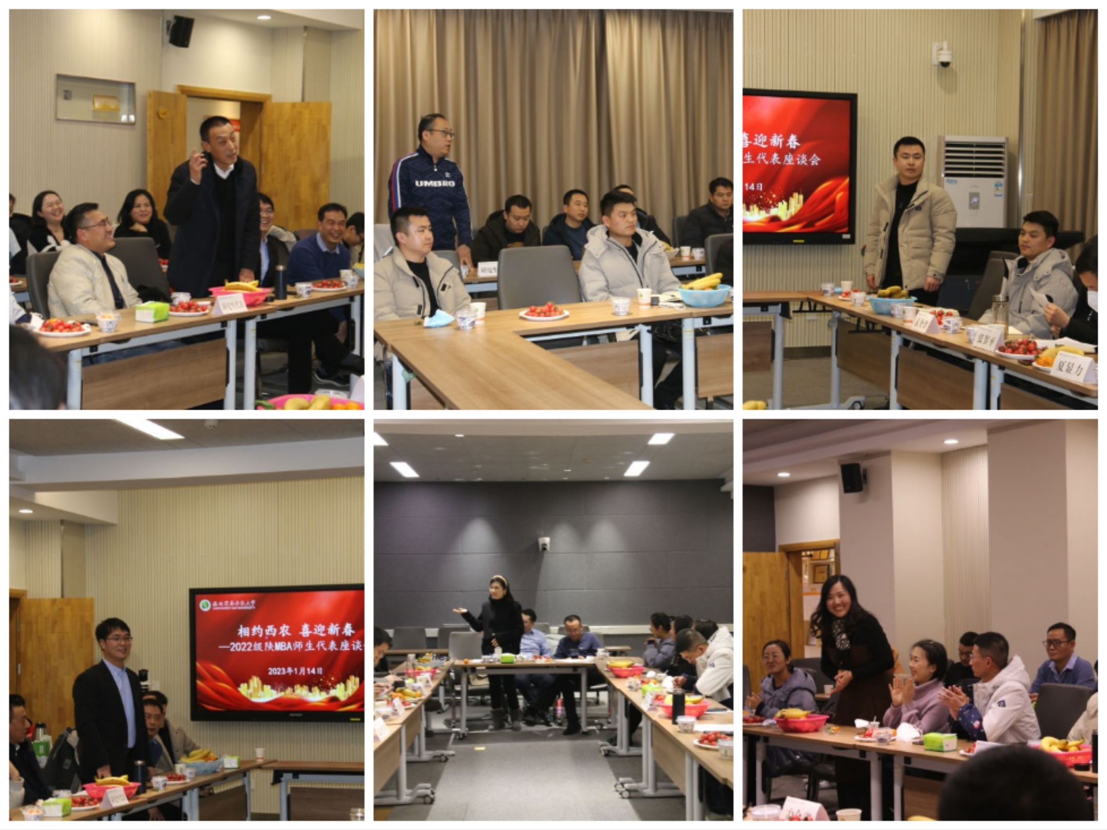 1月14日,农历腊月二十三,中国北方的传统小年,是喜庆团圆的日子。best365“相约西农 喜迎新春”—2022级陕MBA师生代表座谈会在公司C403会议室欢乐举行。公司党委书记张岁平,经理、MBA教育中心主任夏显力、中心常务副主任孟全省、副主任王军智和2022级陕MBA各班30多位同学代表参加座谈会。