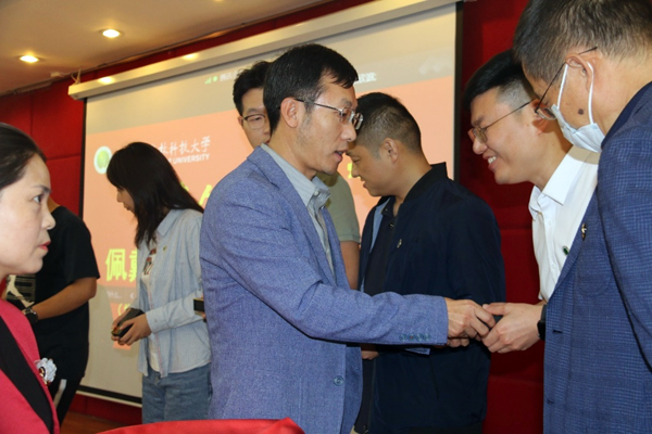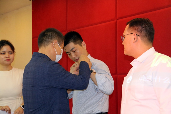 随后,在“西农人、西农印”校徽佩戴、名章赠送环节,公司党委书记张岁平,党委副书记张军驰郑重的为姜海朝、石如玉、冯方雷、董渊、刘正阳、杨强、李光杰、严静妮、税登鸿、韩祥军等十位新生代表,佩戴best365官方网站校徽、赠送由西农篆刻协会制作的刻有院训的姓名印章。校徽是公司的重要标志之一,佩戴校徽是学子身份的象征和爱校荣校的具体展现,不仅是一种仪式,胸前佩戴校徽的那一刻,学子与best365官方网站就有了千丝万缕的联系并将逐渐融为一体。从此,生命里将深深嵌入“西农印”记。校徽佩胸前,责任担在肩,在惠煜、李光杰、徐真三位同学带领下,全体在场同学和线上同学庄严宣誓:谨记西农校训,热爱祖国,忠于人民;诚信正直,尊师重道;勤奋学习,积极创新;担当责任,追求卓越;以工商管理之学识,成经世济民之英才!