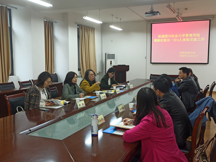 10月31日下午,四川农业大学管理公司经理傅新红教授、副经理李冬梅教授、农经系系主任张社梅、副系主任杨春一行四人到访公司,双方就本科教学的组织与管理工作及绩效改革、农林经济管理国家一流专业建设、实验室及校外实习基地建设、专业核心课程教学及实验教学、学科与团队建设、研究生招生与培养等方面进行座谈。公司副经理汪红梅教授、农经系主任赵凯教授、杜君楠副教授、闫小欢副教授、徐家鹏副教授等人员参加座谈会。