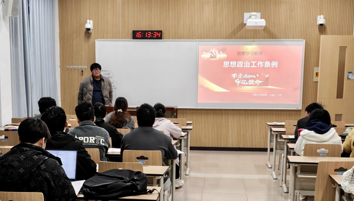 为深入学习贯彻党的政治理论精神,强化思想政治教育实效,10月22日,公司各团支部以“深学条例铸思想,笃行实干育青年”为主题,组织开展政治理论学习活动。2024级辅导员邢云翔老师亲临2024级各团支部,与同学们共同学习《中国共产党思想政治工作条例》。