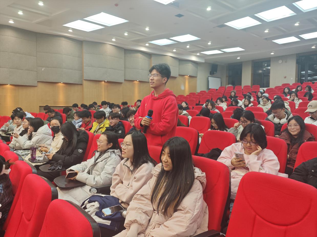 表演赛结束后,现场互动环节如期而至。首先辩论主席邀请现场观众为自己认可的观点或队伍进行投票,最后反方以四票之差获得了胜利。其次有不少观众主动举手,结合自身经历向辩手提出疑问与见解,比如首位提问者打趣般地向正方一辩提出了之前水果刀伤人性质的比喻,另一位提问者也对反方辩手提出了对“多劳”的定义的质疑。辩手们耐心解答,结合辩论思路给出切实建议。