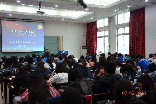 为了认真贯彻《党章》要求,落实《中国共产党发展党员工作细则》规定,提高党员发展对象和预备党员的党性意识,经管公司党委于5月7日对74名党员发展对象和63名拟转正预备党员进行了集中培训,邀请相关领导干部为发展对象和预备党员做专题讲解。培训中,三位老师分别以“党的组织原则和党的纪律”、 “全面建成小康社会决胜阶段,必须牢固树立五大发展理念”,“党员的义务,党员权利——学党章知党章”为主题进行了详细讲解。