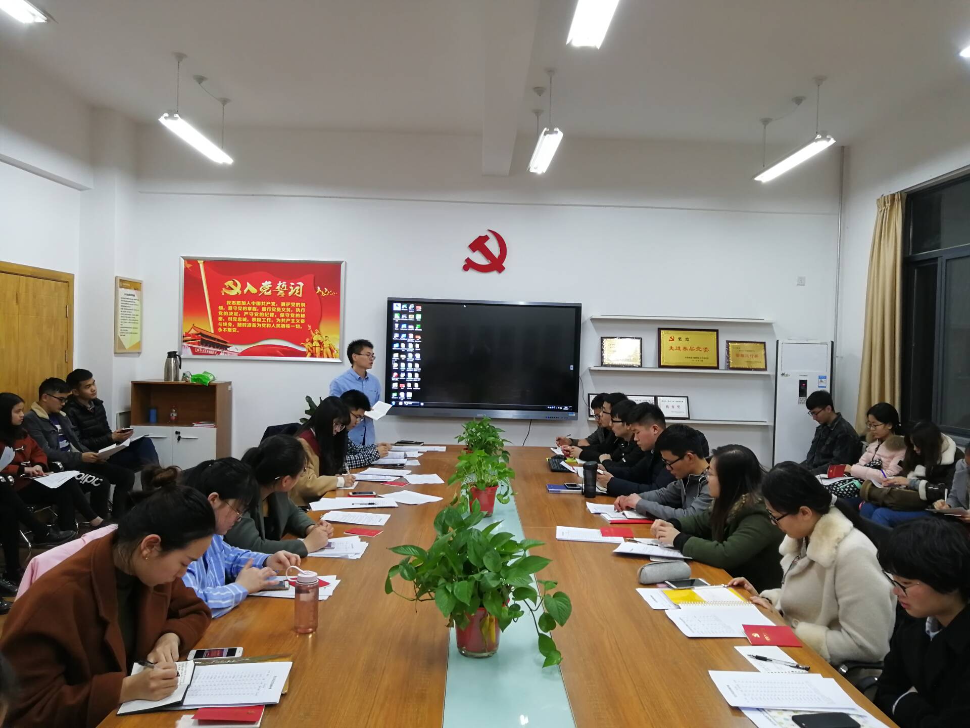 会上,张蚌蚌书记对这一年来支部的工作进行总结:支部组织了对十九大报告的学习,对预备党员转正和发展党员做了充分准备,但因为工作时间冲突等原因,十二月准备的红色教育活动未能落实,没有及时带领大家学习中央一号文件精神等。接下来,张老师就以上存在的问题提出整改措施,计划在新的一年里进行两到三次讲座学习,邀请公司专家重点针对国家乡村振兴战略进行讲解,带领大家学习习近平新时代中国特色社会主义思想,组织一次红色教育为主题的参观活动。