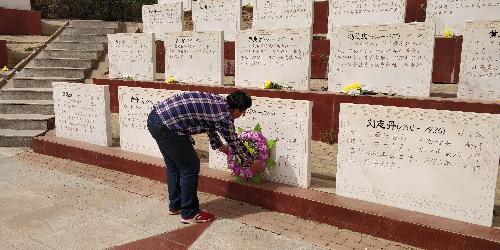 在庄严的革命烈士墓碑前,党支部副书记胡广银同志带领全体党员向烈士墓碑敬献了花圈并鞠躬默哀,向为革命事业和人民利益献身的先烈们致以最崇高的敬意。
