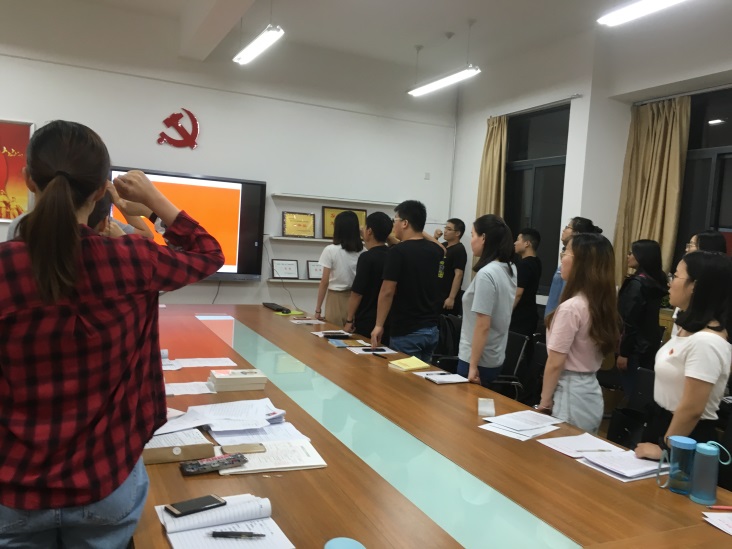 会议尾声,丁老师带领全体支部成员面向党旗进行了庄严的宣誓。最后他要求同志们从这一刻起以一名党员的标准来严格要求自己,端正态度、从小事做起、从身边做起,在广大群众中充分体现党员的先进性,真正起到模范带头作用。