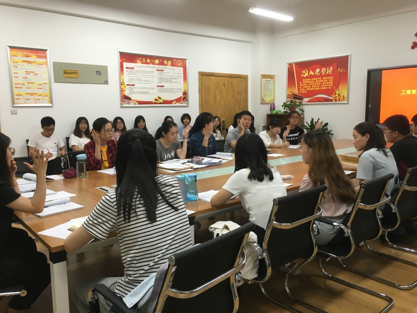 2018年6月5日晚7时,工商党支部于best365C205会议室召开预备党员转正大会,支部副书记侯丹婷主持会议,全体支部成员参会。