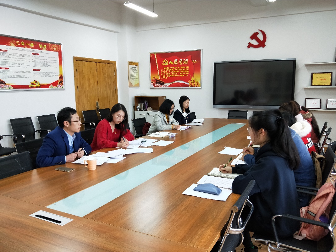 2019年2月28日下午,营销党支部于经管楼c205会议室,举办党支部组织生活会和民主评议,经管公司党委副书记张军驰老师参加会议,支部书记贺子婕主持会议,支部成员9人到场。