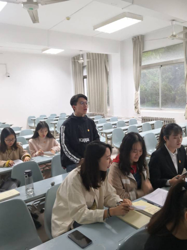 会议伊始,支部副书记廖钎铅对大家上半个月的学习情况进行了点评,大部分同学都能够认真完成学习任务,鼓励大家继续努力学习。随后,支部成员分别分享了自己对“不忘初心,牢记使命”的认识和体会。支部副书记廖钎铅同学对大家的心得进行了总结。初心始终坚信念,牢记使命勇直前。中国共产党的初心是起点时的承诺与信念,是困境时的责任与担当。新中国成立70周年以来,我们不断地迎风遇雨,在中国共产党的领导下,攻坚克难、真抓实干,一步步朝着为中国人民谋幸福、为中华民族谋复兴而前进。如果这是一条路,那它一定布满荆棘坎坷;如果这是一片海,那它一定波涛汹涌。但只要我们初心依旧,向实现共产主义的伟大理想坚定地前行,那途中的波澜便不再只是绊脚石,而更是一次次的历练和锤炼。