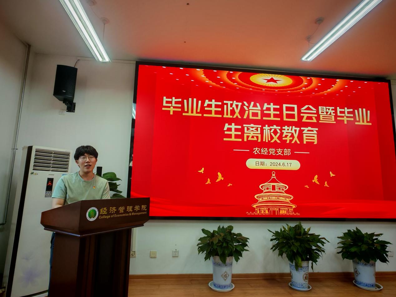 时光清浅,岁月流转,又是一年毕业季,6月17日,党支部在C304会议室召开2024届毕业生欢送会,公司党委副书记张军驰、农经党支部全体2024届毕业生党员参加。