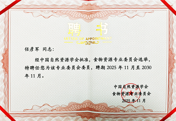2025年11月8日-9日,中国自然资源学会食物资源专委会成立大会暨食物系统转型与可持续消费研讨会在江西南昌召开。本次会议围绕“新时期食物系统转型与可持续消费”开展,来自中国科公司、中国农业科公司、北京大学、中国农业大学等50余所高校、科研院所的120余位专家学者和青年研究生参加了会议。团队黄禄臣博士生受邀前往会议,任彦军教授受聘为中国自然资源学会食物资源专委会委员。