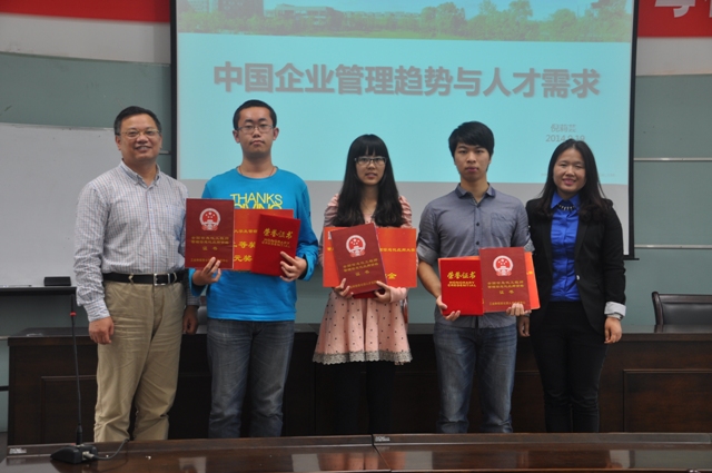 此次比赛是由公司教务处主办、公司承办的校级学科竞赛。比赛分两个环节进行,第一环节是以用友ERP872为平台进行的机试环节,通过此环节的选手进入第二环节――面试环节。比赛最终获胜者,获得用友新道公司颁发的荣誉证书、奖金和NCIE《全国信息化工程师-管理信息化应用资格》中级证书。经过两个月的培训和激烈的角逐,陈律玮、张潇天、铁鑫林等14位同学获奖。