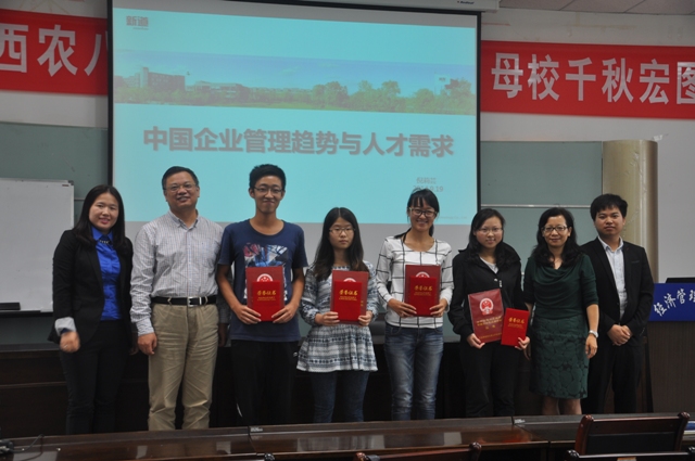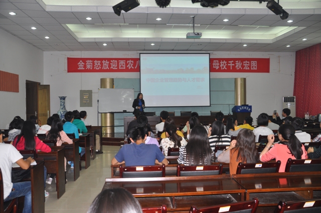 颁奖仪式后,用友新道股份有限公司陕西分公司总经理倪莉芸女士应邀为同学们做了“信息化时代老员工如何提高就业竞争力”的报告。