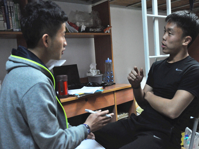 是什么让他在这么辛苦的春训中坚持下来,他坚定的告诉我:“运动的时候是我最自信的时候,是自信给予我力量,使我能坚持提高自我、努力训练。”他对所有球类运动都比较在行,几乎在每个阳光明媚的中午都能在球场上看见他矫健的身影,宛如最强王者,在赛程上自信的做着自己爱的事情。